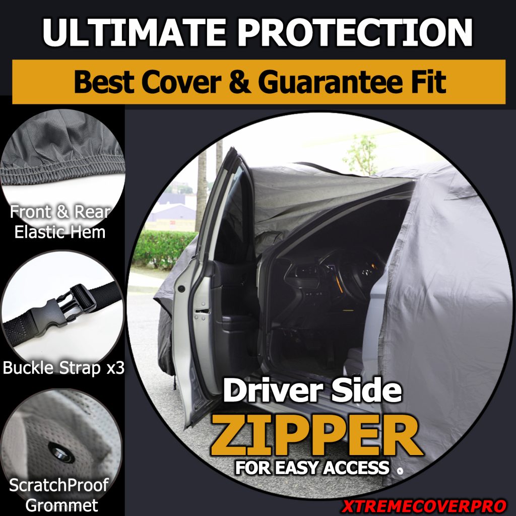 The XtremeCoverPro addresses this common frustration with a game-changing feature: a heavy-duty driver-side zipper. This integrated zipper allows immediate access to the driver’s seat without having to remove or readjust the entire cover.